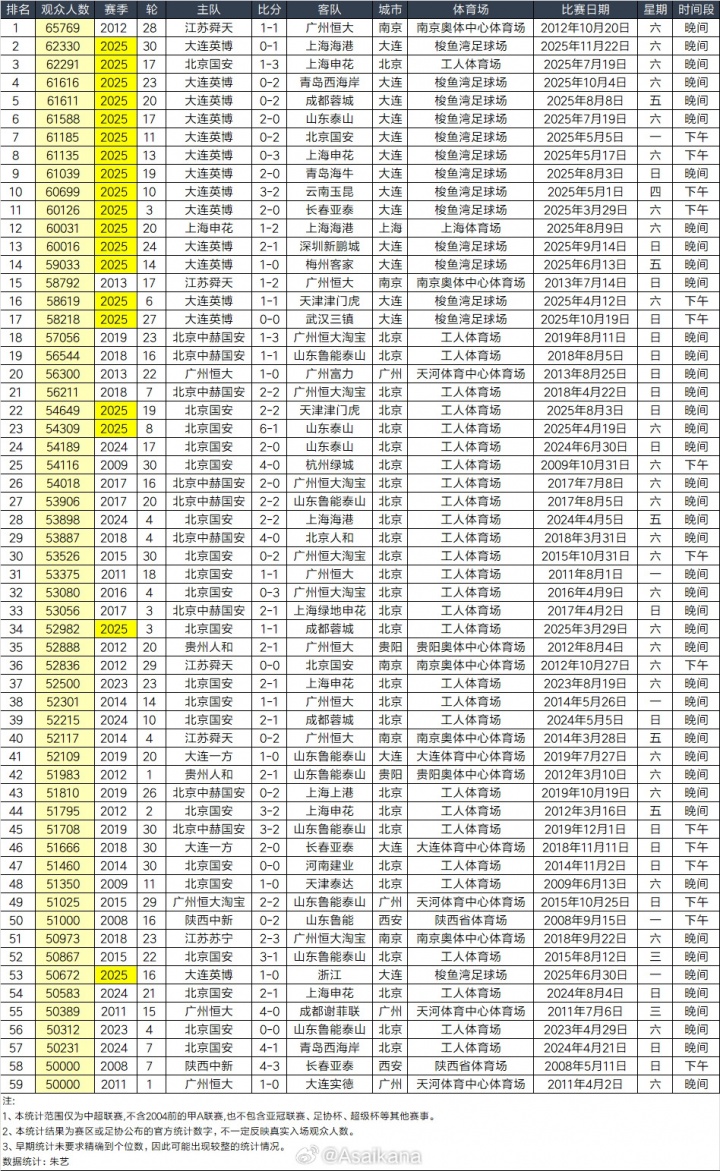 大连梭鱼湾足球场本赛季中超联赛不雅众总东说念主数达874019东说念主,场均58268东说念主,大连英博也凭借该数字在大众俱乐部主场不雅世东说念主数场均榜中位于第18位。15个主场比赛中,有14场比赛不雅众超越五万东说念主,10场超越六万东说念主。赛季收官战以62330东说念主从头从京沪德比手中夺回赛季最高记载。