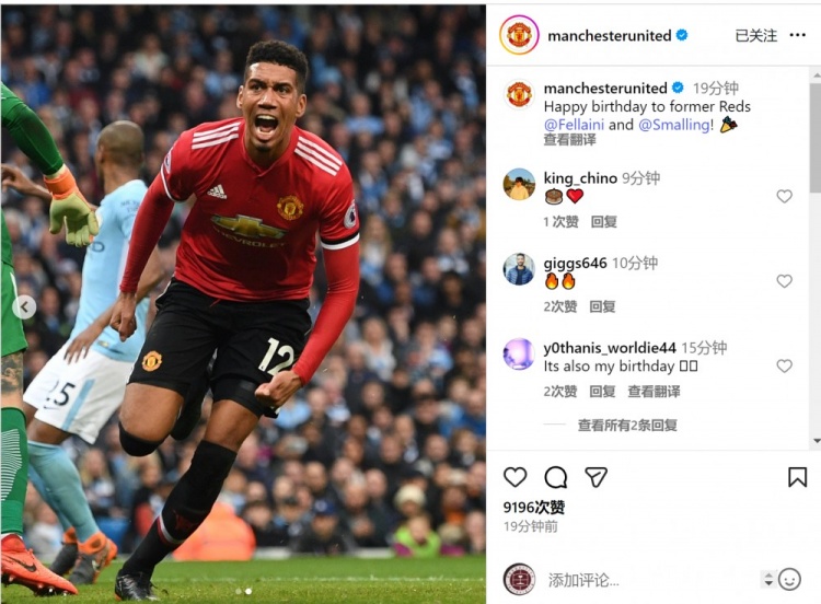寿辰风物!曼联官方社媒为费莱尼、斯莫林庆生