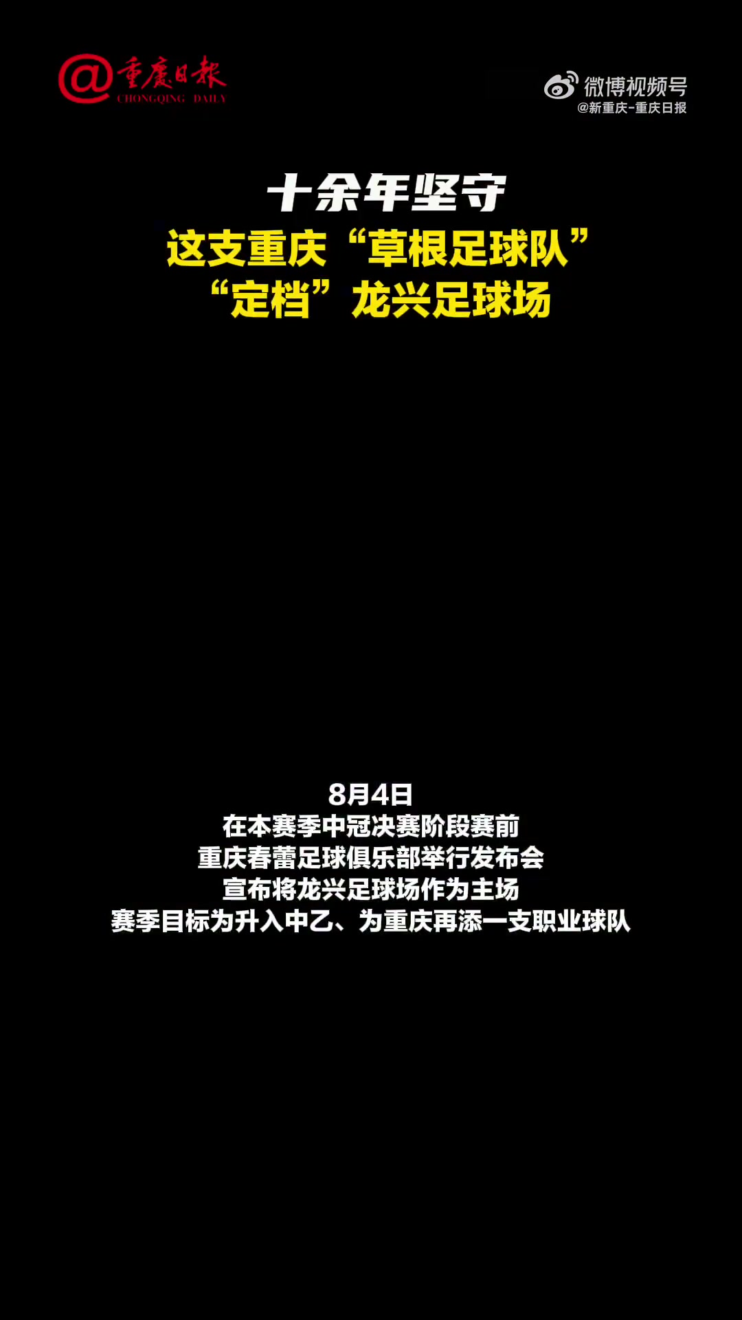 8月4日,在本赛季中冠决赛阶段赛前,重庆春蕾足球俱乐部举行发布会晓示将龙兴足球场四肢主场,赛季缱绻为升入中乙、为重庆再添一支奇迹球队。