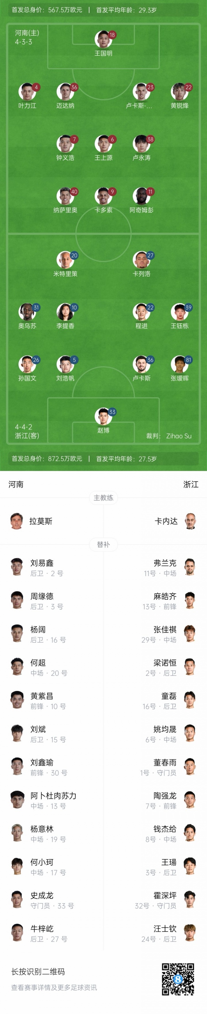 河南vs浙江首发:5外助PK4外助!王上源、王钰栋、米特里策先发
