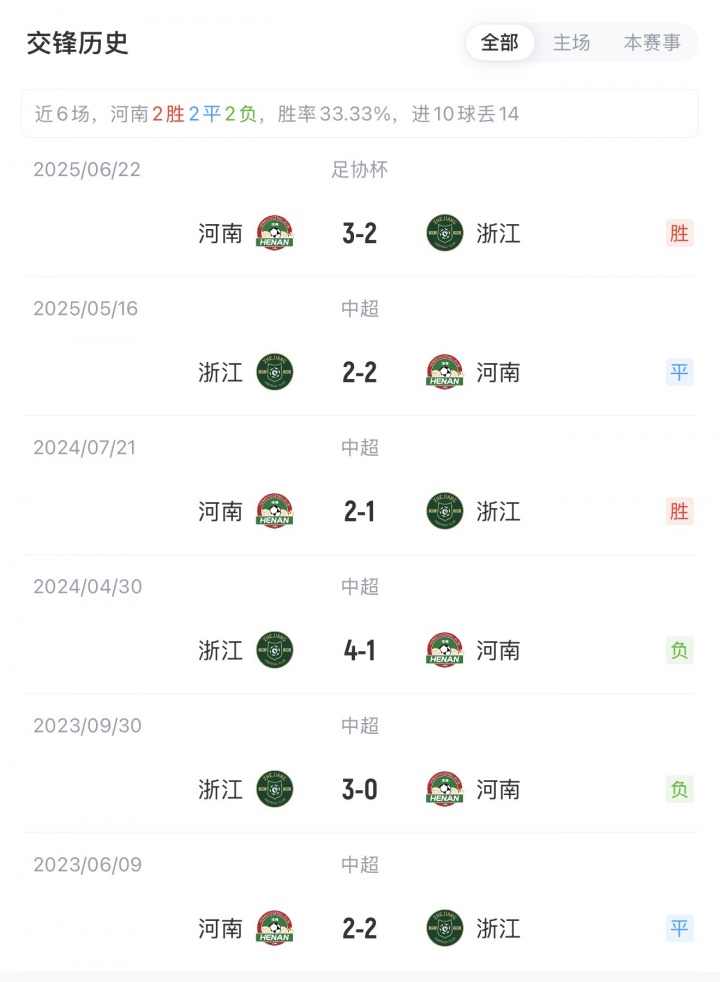 10月25日讯 19点中超第28轮,河南主场迎战浙江。河南近4轮3胜1负,浙江近3轮一起战平。