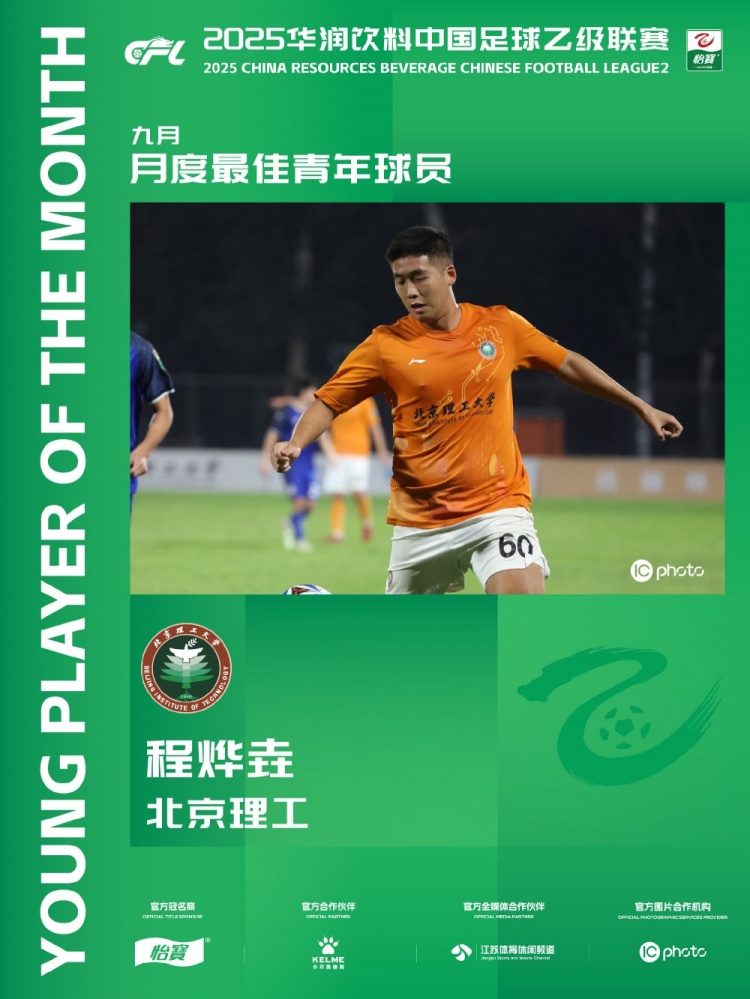 中乙官方:北理工球员程烨垚获9月最好后生球员,孝敬3球2助攻