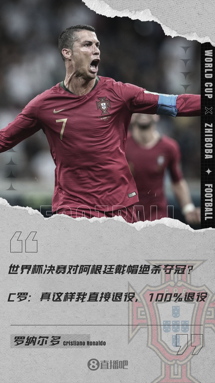 之后C罗还示意若寰宇杯决赛对阵阿根廷戴帽夺冠,100%退役。