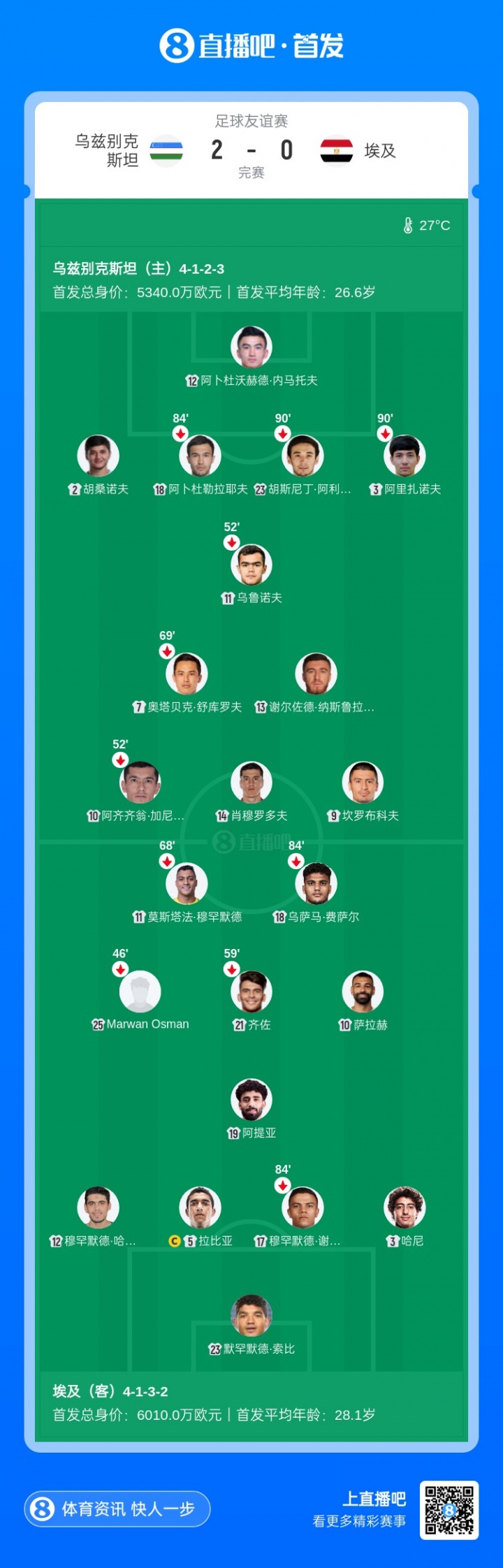 卡帅有能!乌兹别克斯坦2-0埃及,卡纳瓦罗上任3战2胜仅输乌拉圭