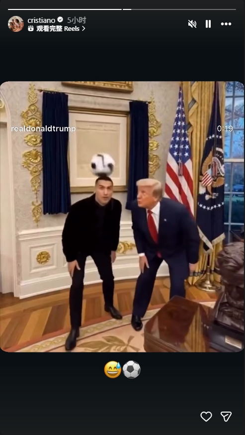 C罗社媒转发了这段视频,并附上两个花式:“😅⚽”。
