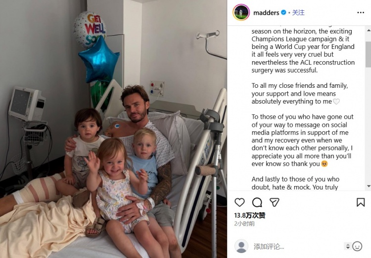 在酬酢媒体上,麦迪逊写谈:我从未阅历过如斯的低谷!在这个要害时辰遇到伤病让我心碎不已。未来即是欧超杯,英超新赛季也行将开启,咱们也将迎来振作东谈主心的欧冠征途。而况,本年是英格兰的天下杯年,这一切王人显得特地阴毒。不外,我的十字韧带重建手术特地成效。