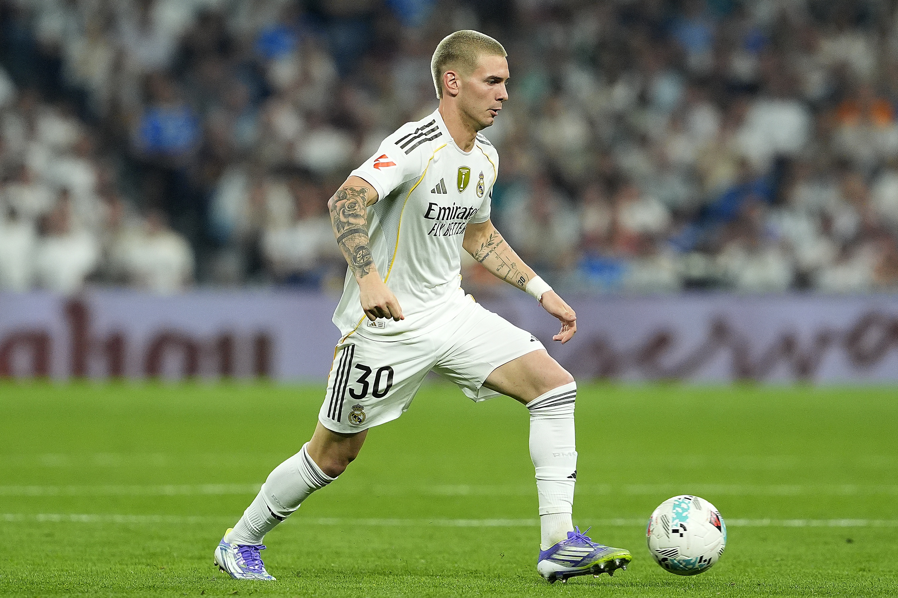 对阵奥萨苏纳(1-0)的比赛仅仅他的初始,伯纳乌球场照旧充满了形态。当他在场边准备换上30号球衣时,全场爆发出“弗兰科,弗兰科...”的欣喜声,这一幕赶快在酬酢媒体上走红。当今,这件球衣在官方商店中荒谬抢手。