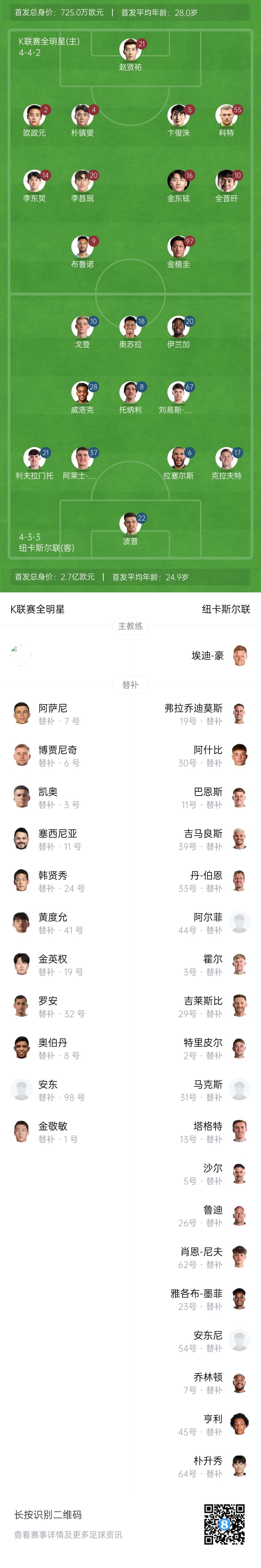 第36分钟,K联赛全明星中场发动反击,李东炅鞭策送出斜塞,金植圭跟进禁区内假手脚晃过注目濒临门将打近角入彀,进球后金植圭亦然合作队友作念出垂纶的庆祝手脚,纽卡0-1K联赛全明星↓