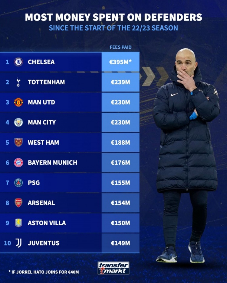 哈托接近加盟!德转列近3年后卫引援榜:切尔西豪掷3.95亿居首