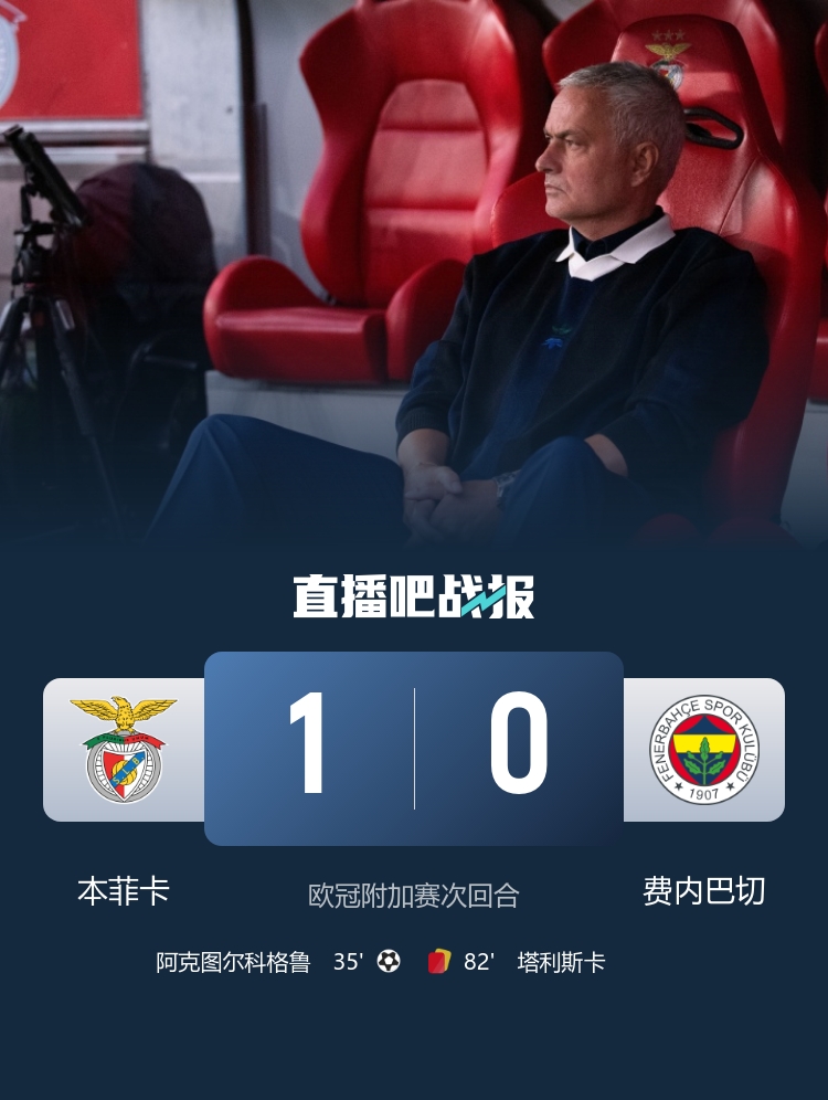 穆帅无缘欧冠!本菲卡1-0费内巴切晋级正赛 塔利斯卡两分钟吃两黄