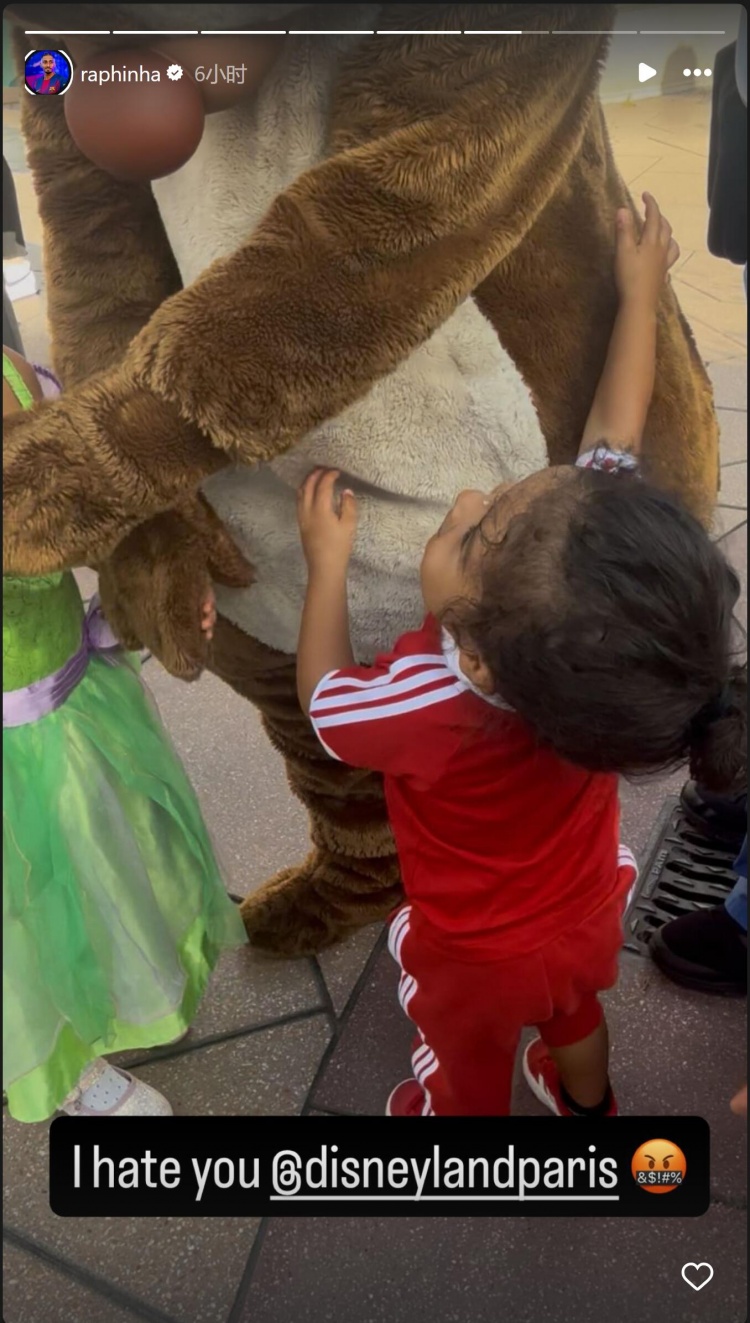 9月6日讯 巴西国度队/巴萨球员拉菲尼亚的孩子去巴黎迪士尼乐土游览,受到了不友善的对待,当这个孩子念念和又名装束成童话东谈主物的迪士尼职工互动时,被对方无视。