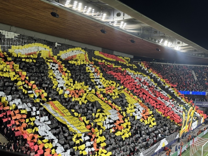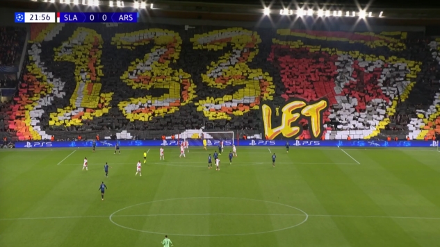 11月05日讯 欧冠阿森纳vs布拉格斯拉维亚,斯拉维亚本周庆祝建队133周年,球迷展示巨型tifo。