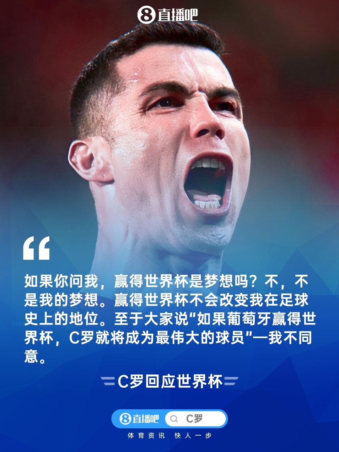 C罗:全国杯不是我的梦思,获得全国杯也不会篡改我的历史地位