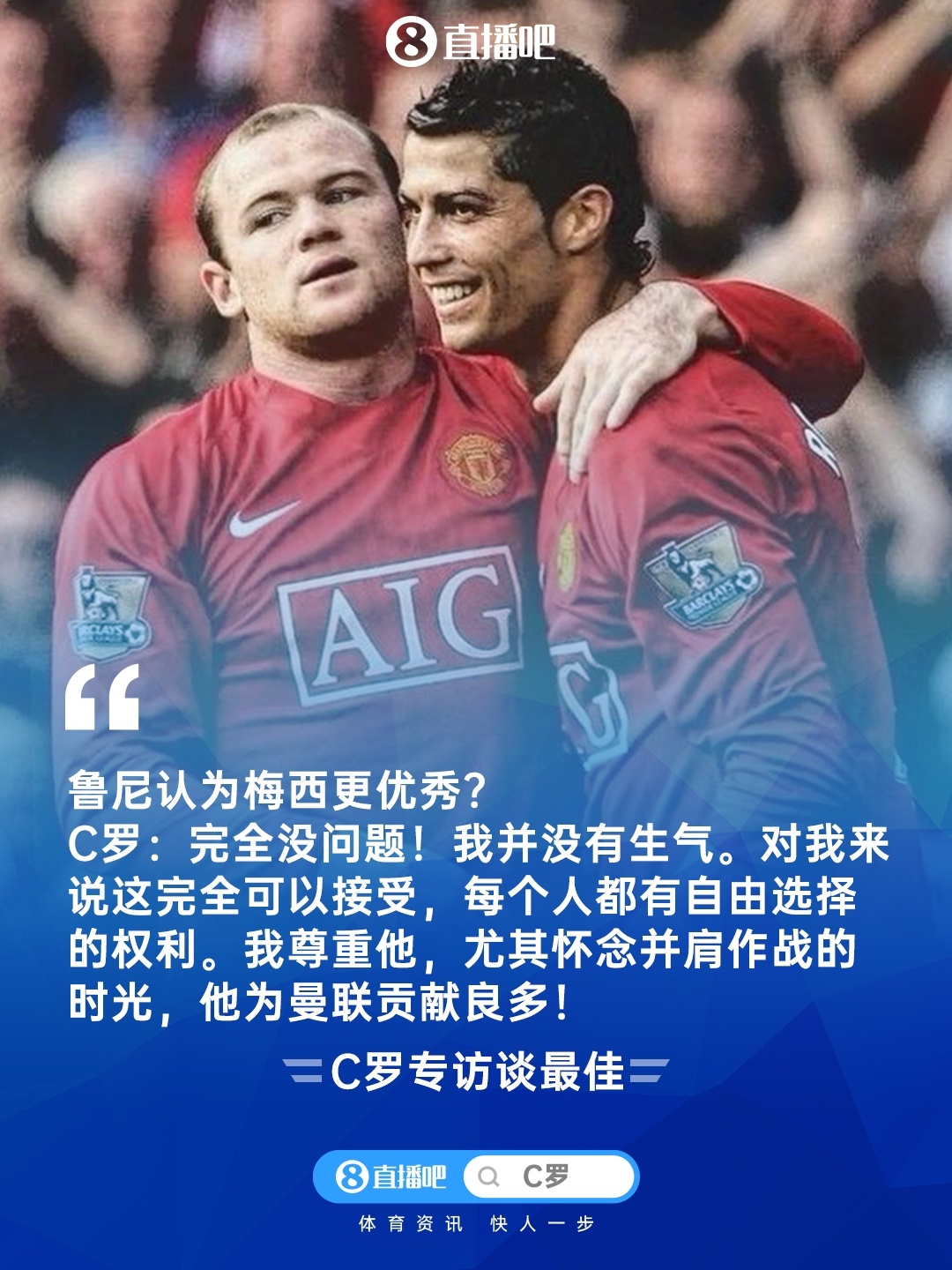鲁尼称梅西更好?C罗:满盈没问题,我不不满,我尊重鲁尼的遴荐