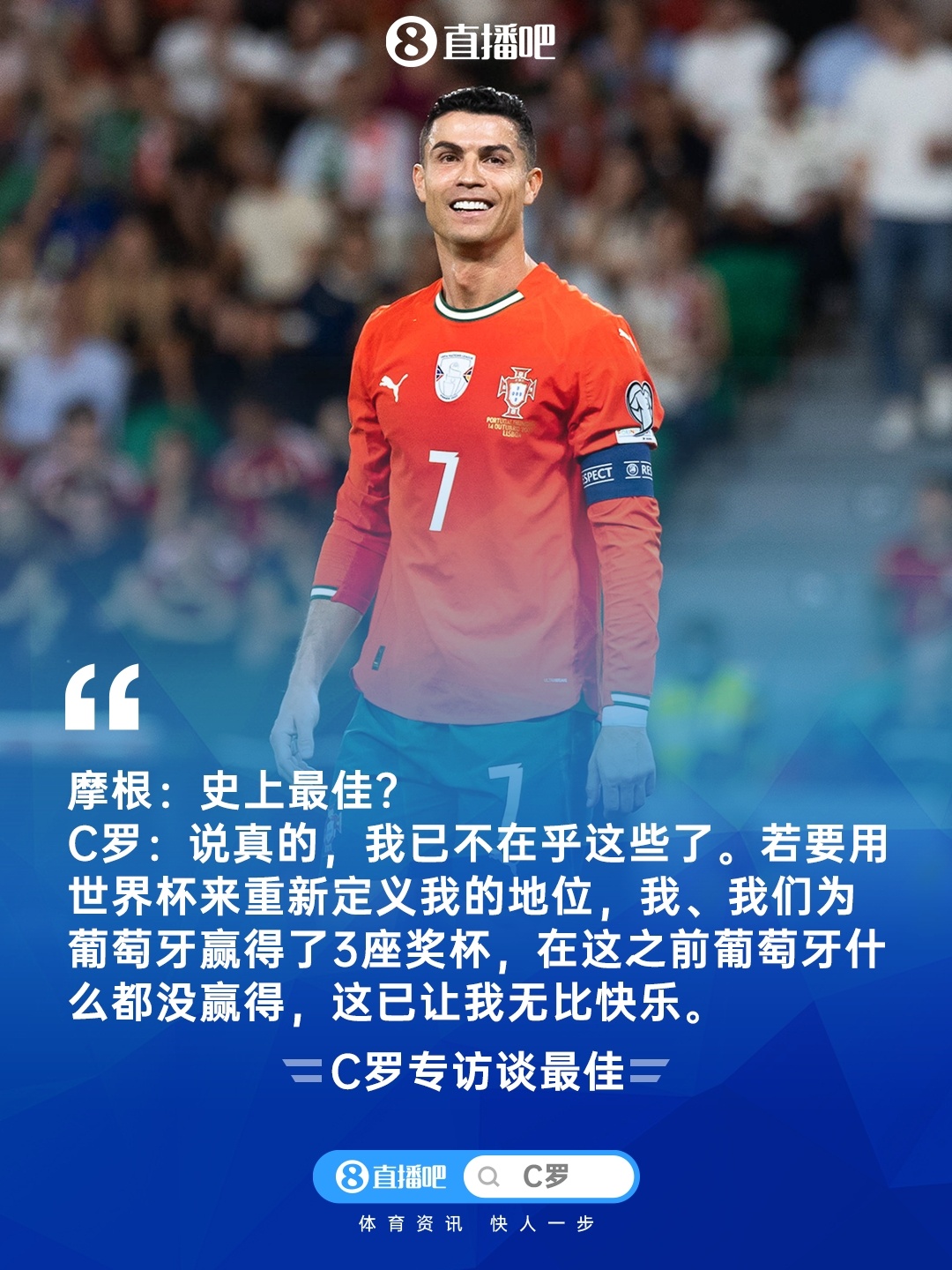 C罗专访第二弹好意思满本色:谈若塔、全国杯、全国和平、詹姆斯...