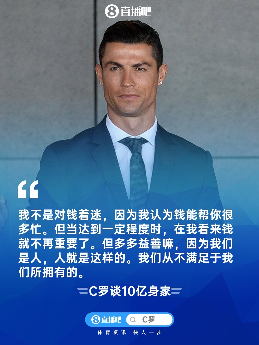不在乎钱罗总裁🤑C罗:10亿刀身家?到了一定进度钱就不进攻了