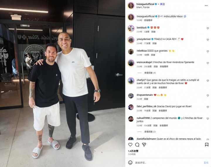 11月08日讯 法国传说球星特雷泽盖在个东说念主社媒晒出与梅西在迈阿密的合影。