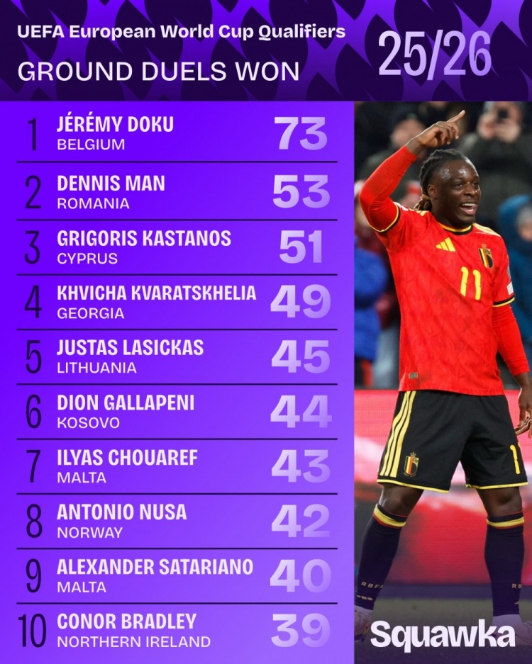 世欧预大地得手叛逆榜:多库居首,克瓦拉茨赫利亚、布拉德利在列