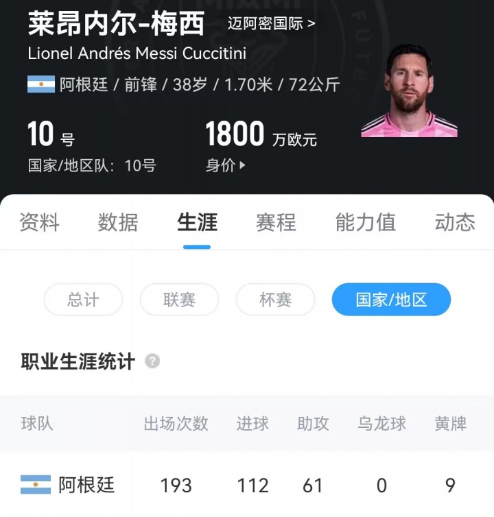 梅西在阿根廷的首秀有些不遂东说念主愿。登场不久后,他就吃到红牌被罚离场。但梅西最终成为了阿根廷队皆备的听说和首脑:他共为阿根廷队出场193次,孝顺112球61助攻,并带队取得了全国杯冠军、好意思洲杯冠军等多项分量级荣誉。