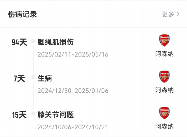 这是哈弗茨在2025年碰到的第二次伤病,他本年2月在迪拜的一次考试营中碰到腿筋扯破,这让他缺席了英超和欧冠的18场比赛