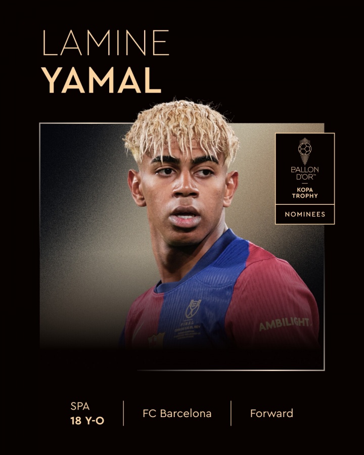 亚马尔&杜埃领衔!2025科帕奖10东谈主候选名单:库巴西、怀森在列