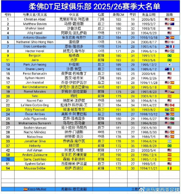 另外,柔佛新山阵中还有9名血缘归化球员。