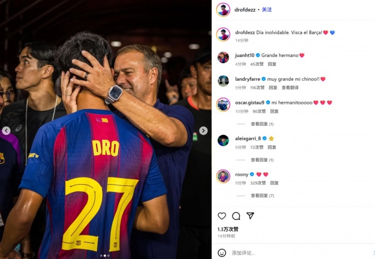 替补立功!17岁小将德罗晒同弗里克互动照:难忘的一天!巴萨万岁