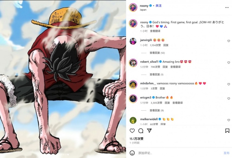 首秀破门!巴德吉社媒晒庆祝照请安《海贼王》路飞,并用日语感谢