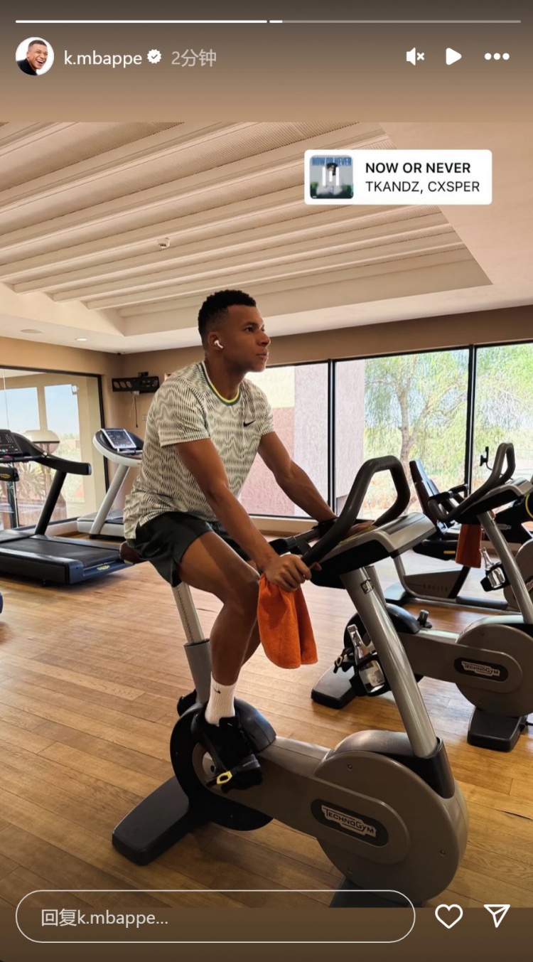 莫得大碍!姆巴佩社媒晒健身房内推行像片