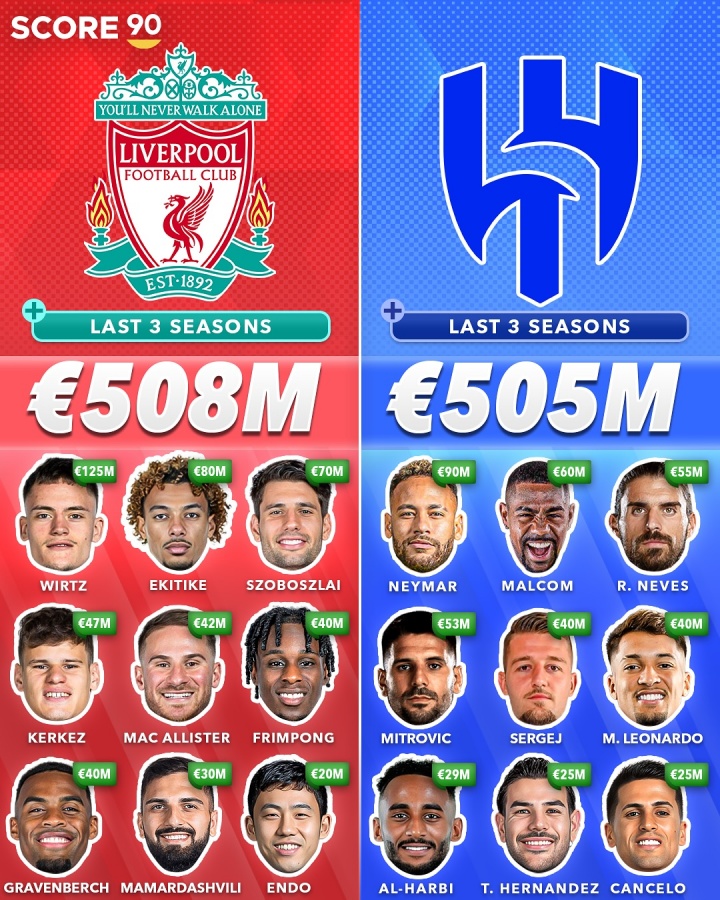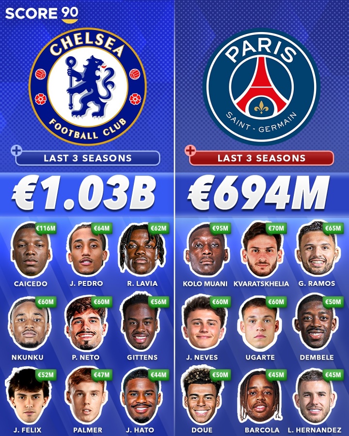 💰近3年转会参预:切尔西超10亿巴黎第2 利物浦第7&big6中最少