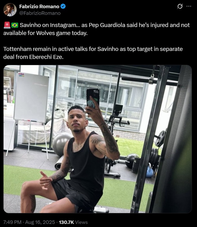 萨维尼奥社媒晒照,罗马诺:热刺仍在就签下这名球员积极筹商