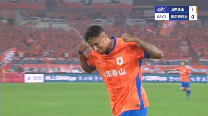 08月24日讯 中超第22轮,山东泰山vs青岛西海岸,比赛第8分钟,李小恒前点精彩一漏,克雷桑第8分钟推射破门,泰山1-0跳跃西海岸。
