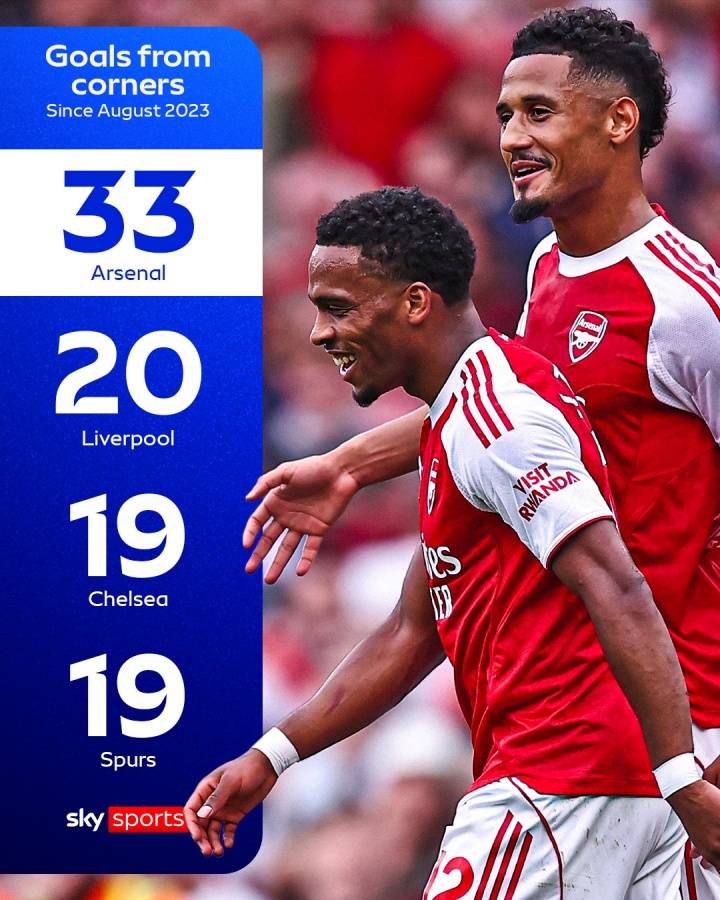 😂角点球?阿森纳近两年33次通过角球破门,在英超断档朝上