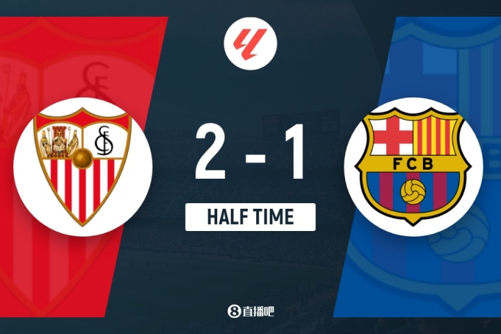 上半场伤停补时6分钟,半场截至,巴萨暂1-2塞维利亚。