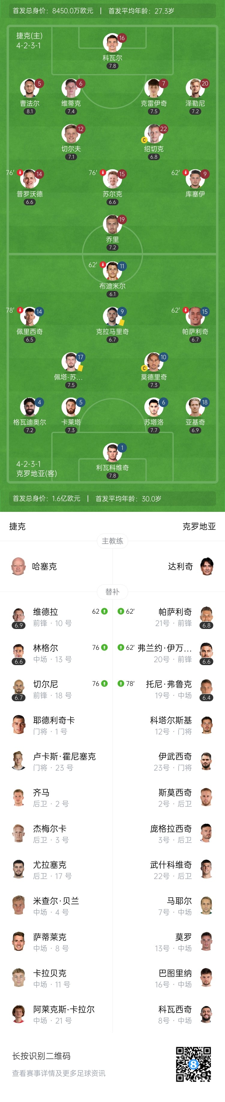 世初赛-捷克0-0战平克罗地亚两队同积13分,40岁莫德里奇踢满全场