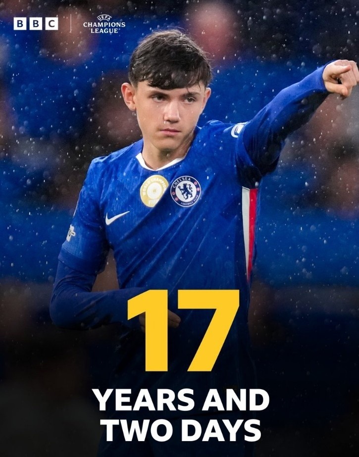本赛季欧冠最年青球员排名榜:沃尔什17岁2天居首,恩古莫哈次席