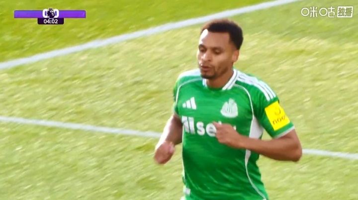 比赛第4分钟,墨菲抽射破门,纽卡1-0升迁西汉姆。此前,鲍文刚刚抽掷中柱。