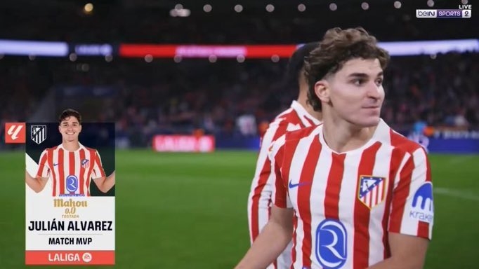 0球0助攻但送出6要道传球!西甲官方:阿尔瓦雷斯当选本场MVP