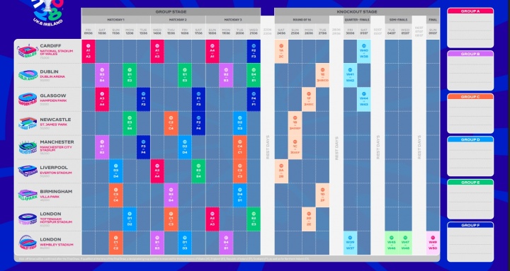 官方:2028年欧洲杯完满赛程厚爱公布,开球时期为21点、0点和3点